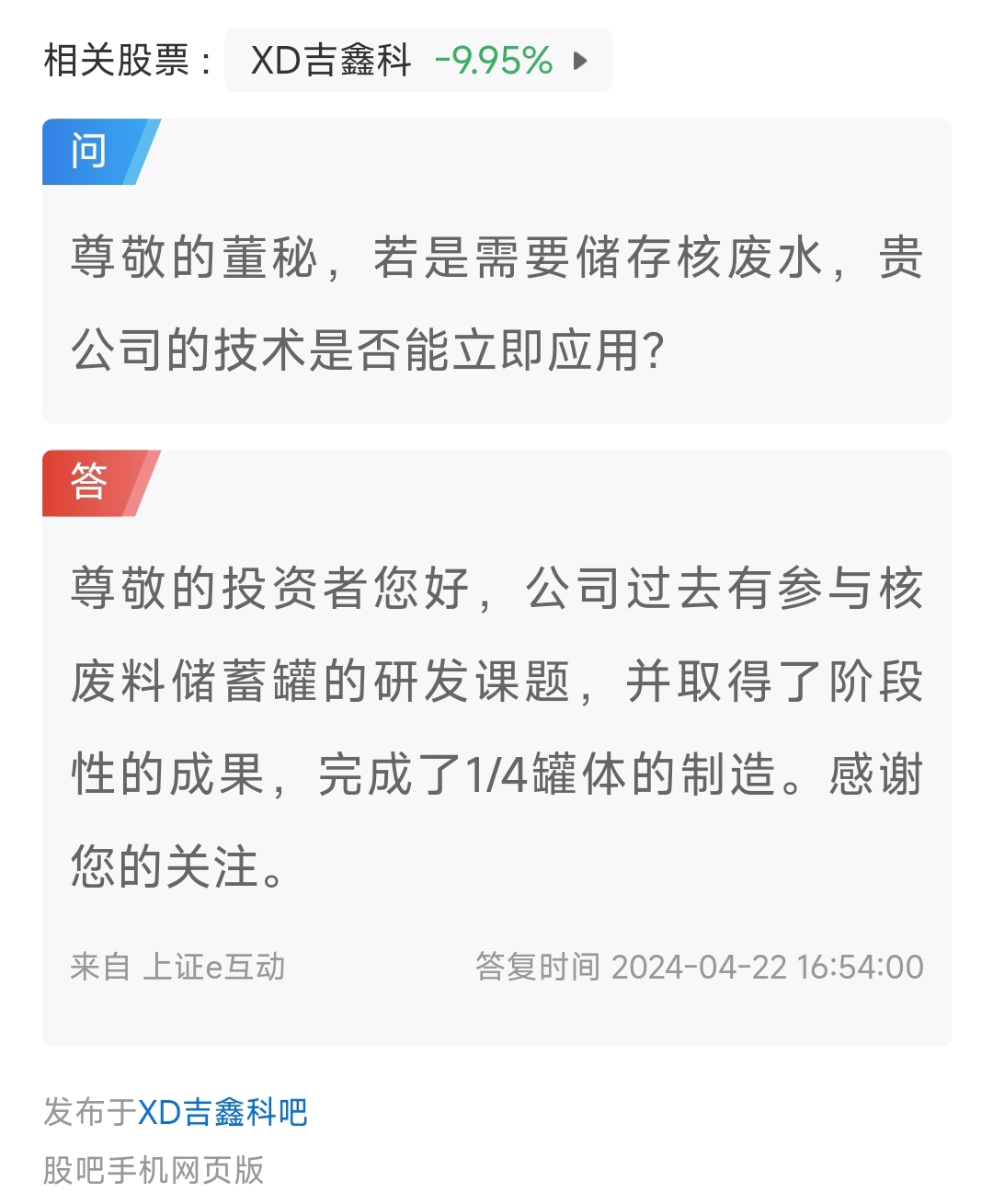 港股核能暴涨,A股核电上海电气已人气榜第一,吉鑫科技有核电概念并进行了研发,金属