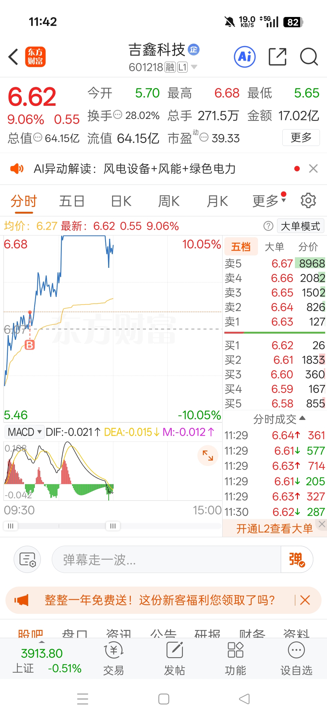 $吉鑫科技(SH601218)$ 买了,今天科技股大退潮,卖点大家自行把握吧