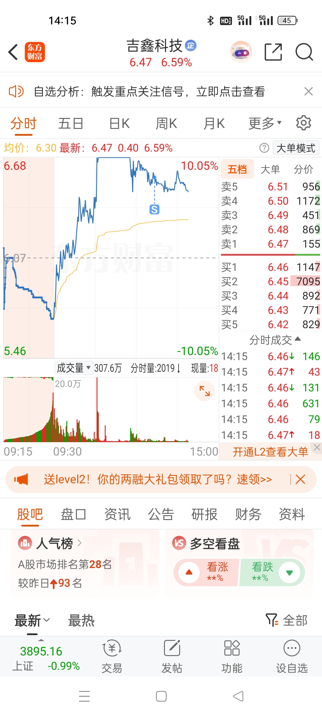 $吉鑫科技(SH601218)$ 我跑了,这换手都不封板,没得搞了