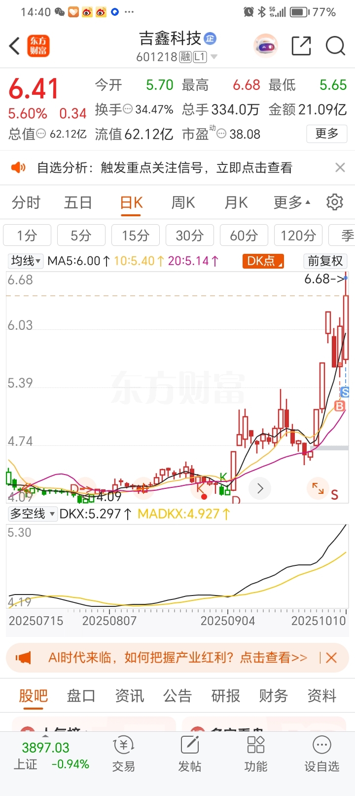 $吉鑫科技(SH601218)$ 我跑路加仓了方正,周一不知道是对是错,不然只能卖了大众在补仓了