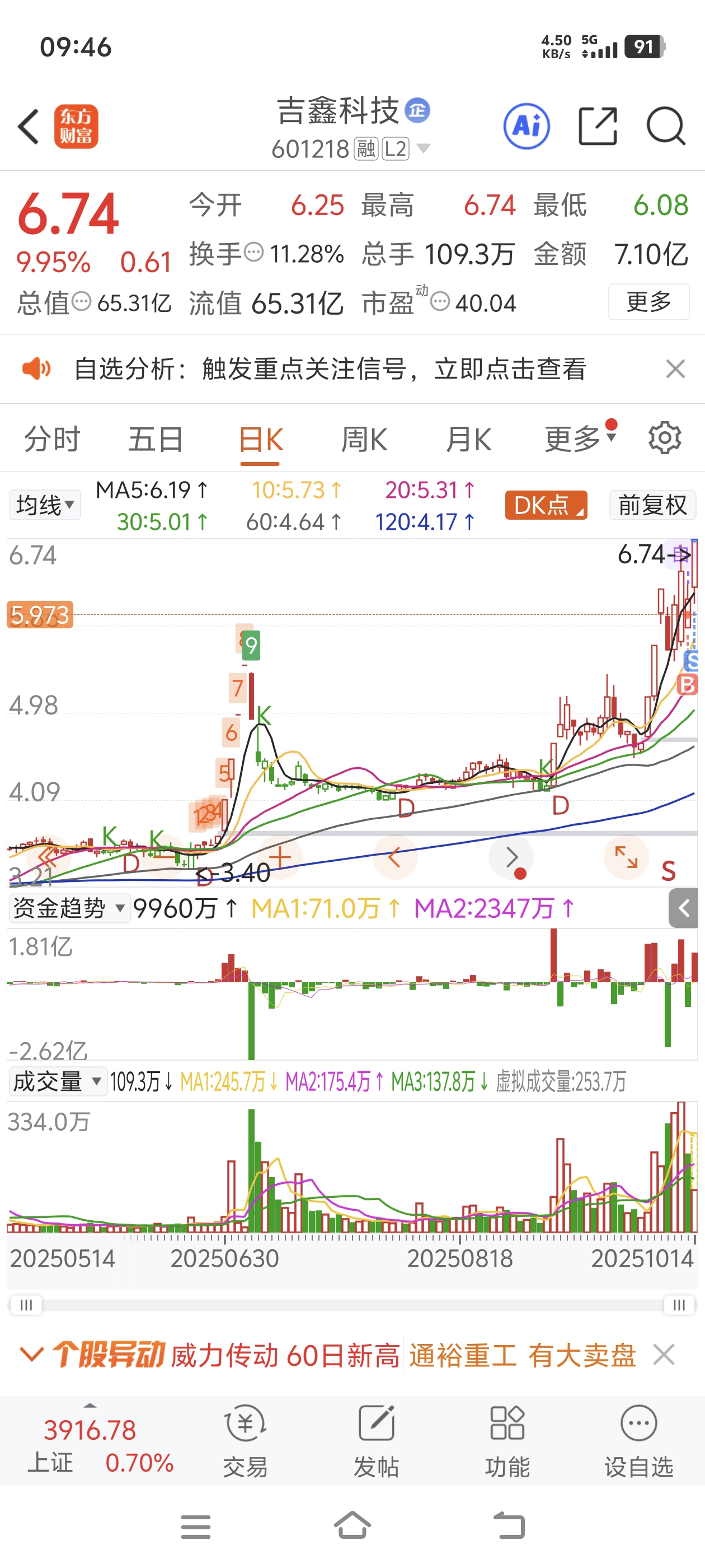 周五进国光昨天把我吓跑了,提前挂红一个点卖单,干完活一看涨停了,气的我买了吉鑫科