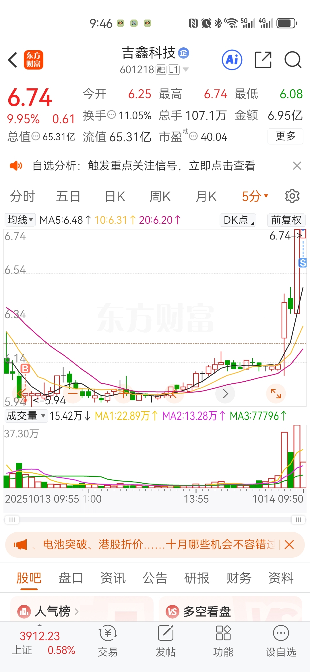 $吉鑫科技(SH601218)$ 我以为我卖飞了