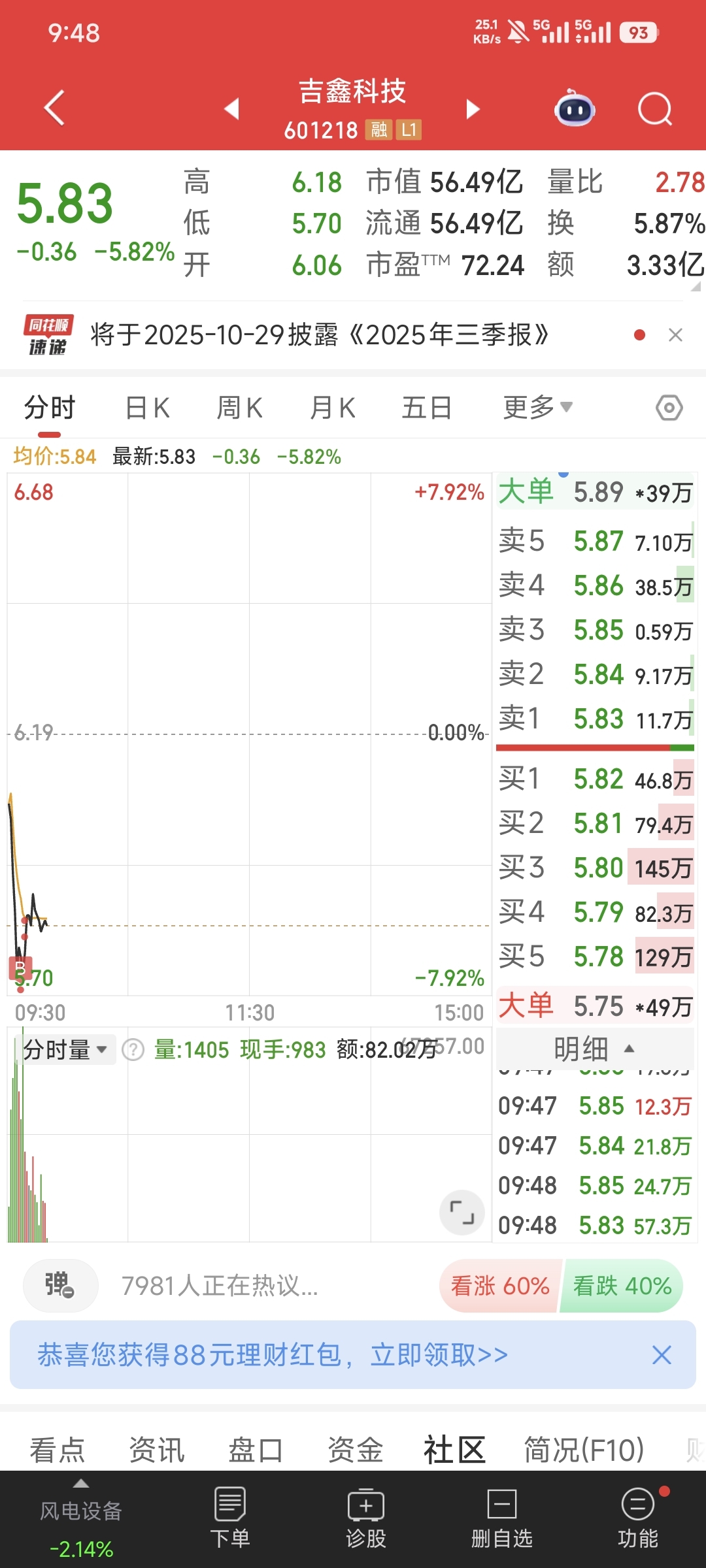 $吉鑫科技(SH601218)$ 煮力,不要砸了