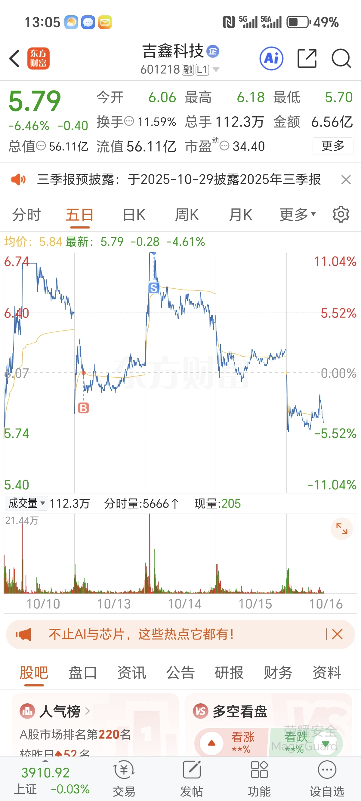 $吉鑫科技(SH601218)$ 辛好跑得快