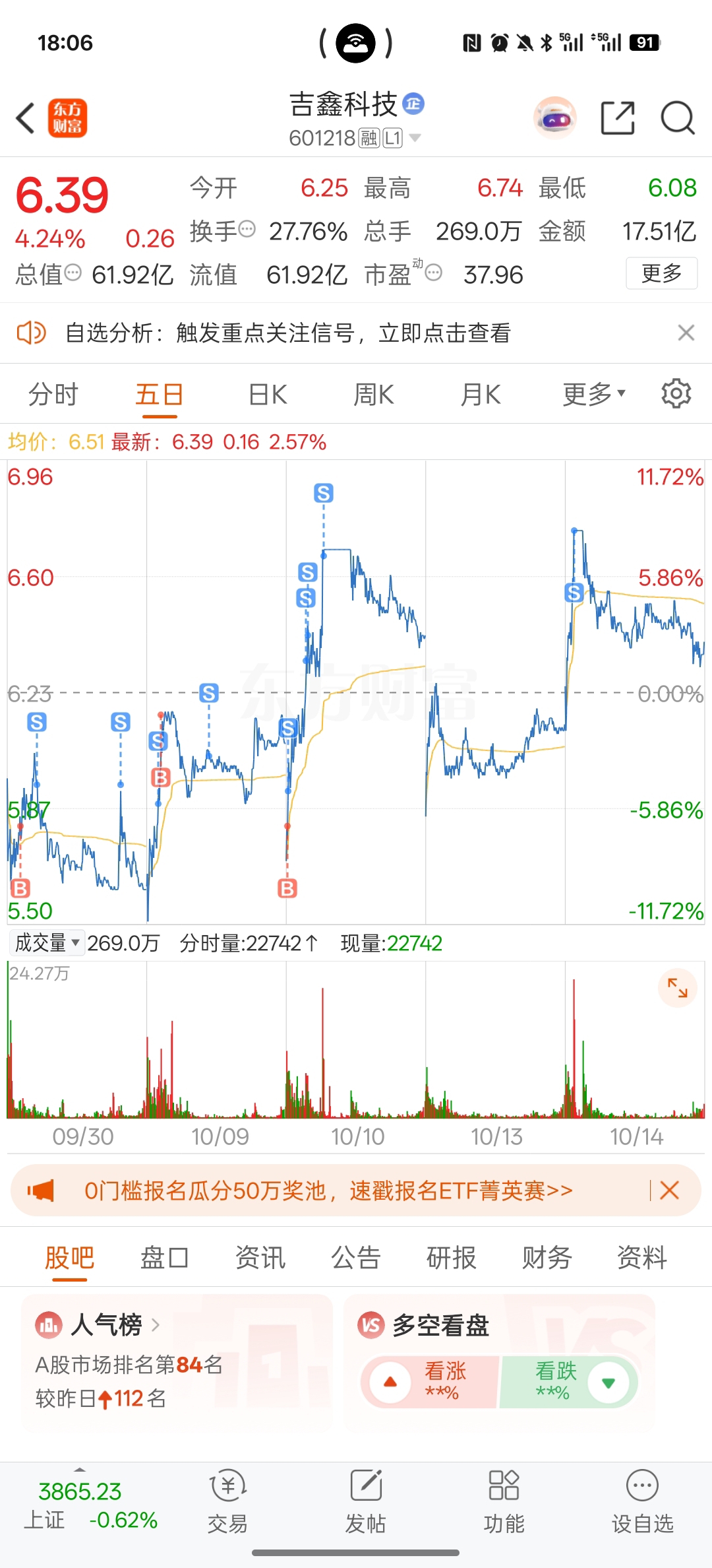 $吉鑫科技(SH601218)$ 三板被套,慢慢t解套,现在没跑的等红了右侧加仓,半个月解套
