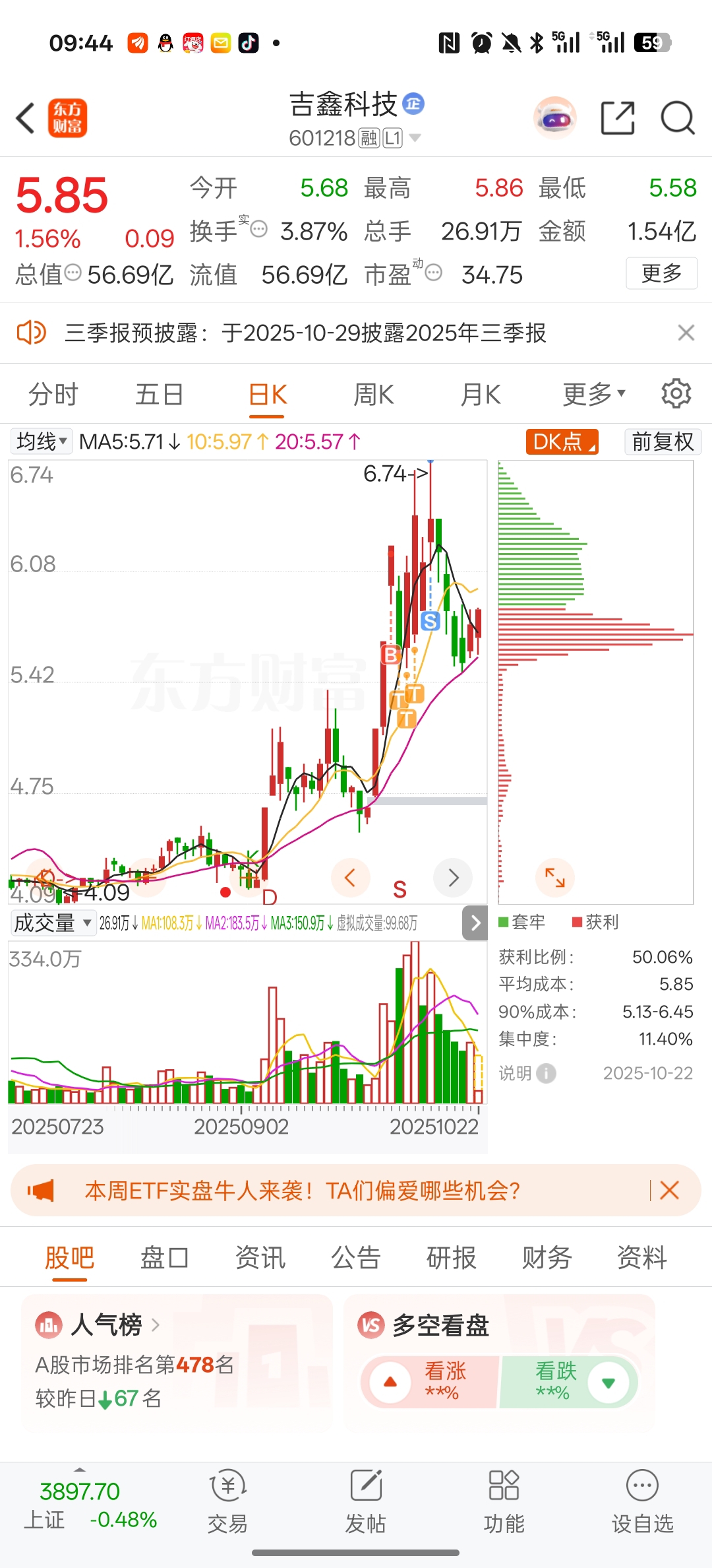 $吉鑫科技(SH601218)$ 尾盘企稳买回来#复盘记录#