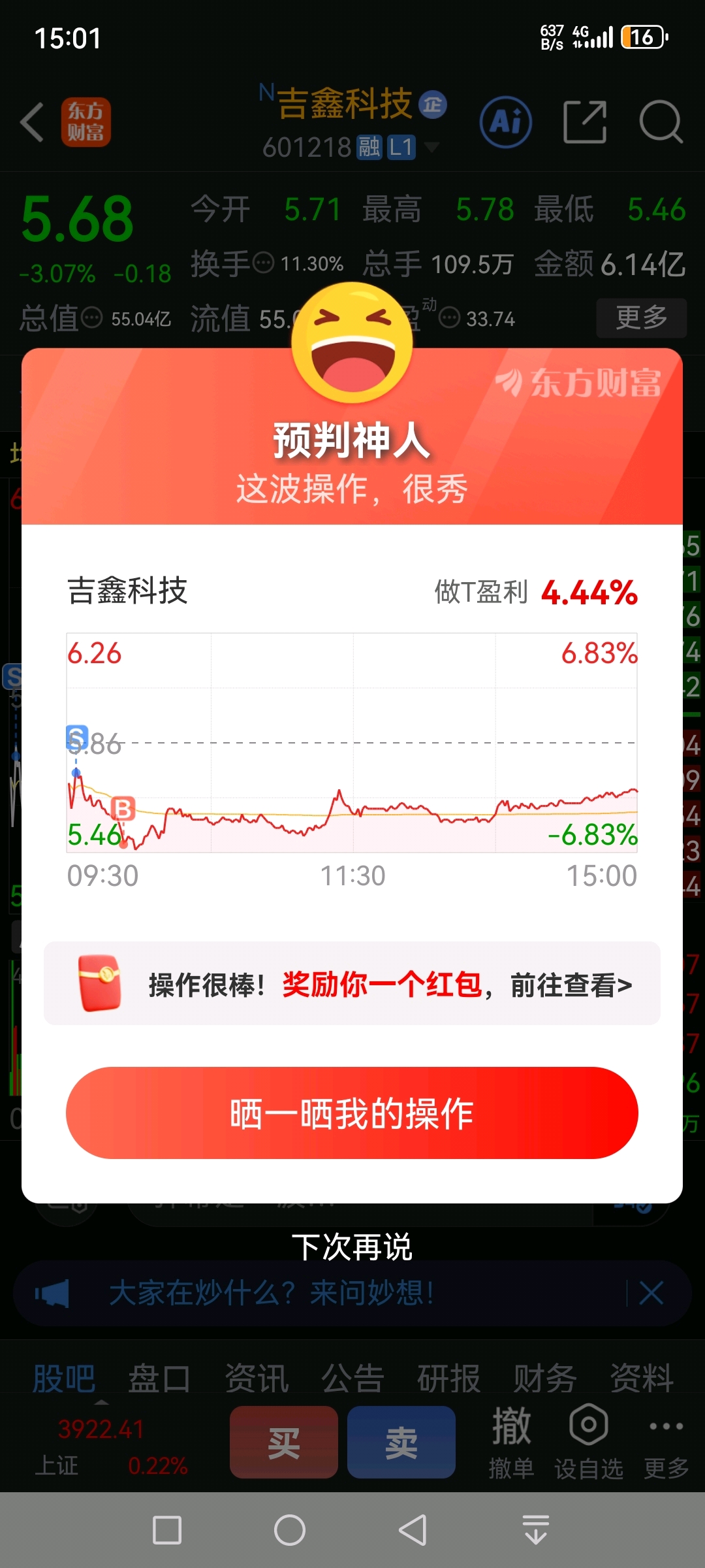 $吉鑫科技(SH601218)$ 看好的就持有涨跌就做T同样能盈利的