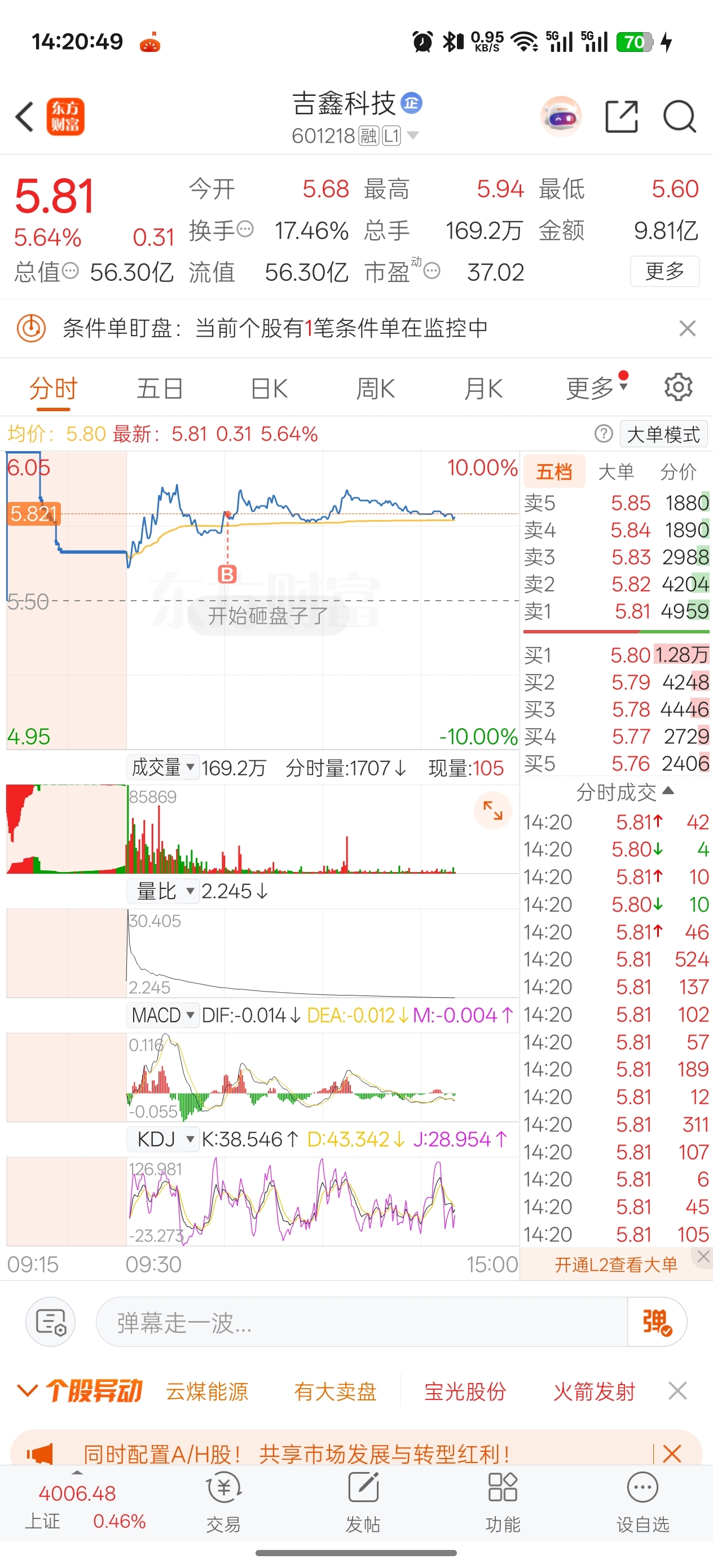 $吉鑫科技(SH601218)$ 这票一点意思都没,主力来回做t收割。