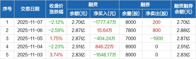 吉鑫科技:融资净偿还1777.47万元,融资余额2.7亿元(11-07)