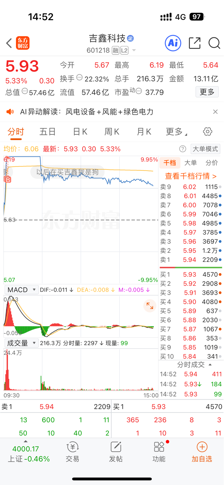 $吉鑫科技(SH601218)$ 一想到炸板还有人进来,还幻想着回封我就想笑,我打板的都认了,都知道是量化出货了,明天肯定低开的,还有一群人炸板冲进来