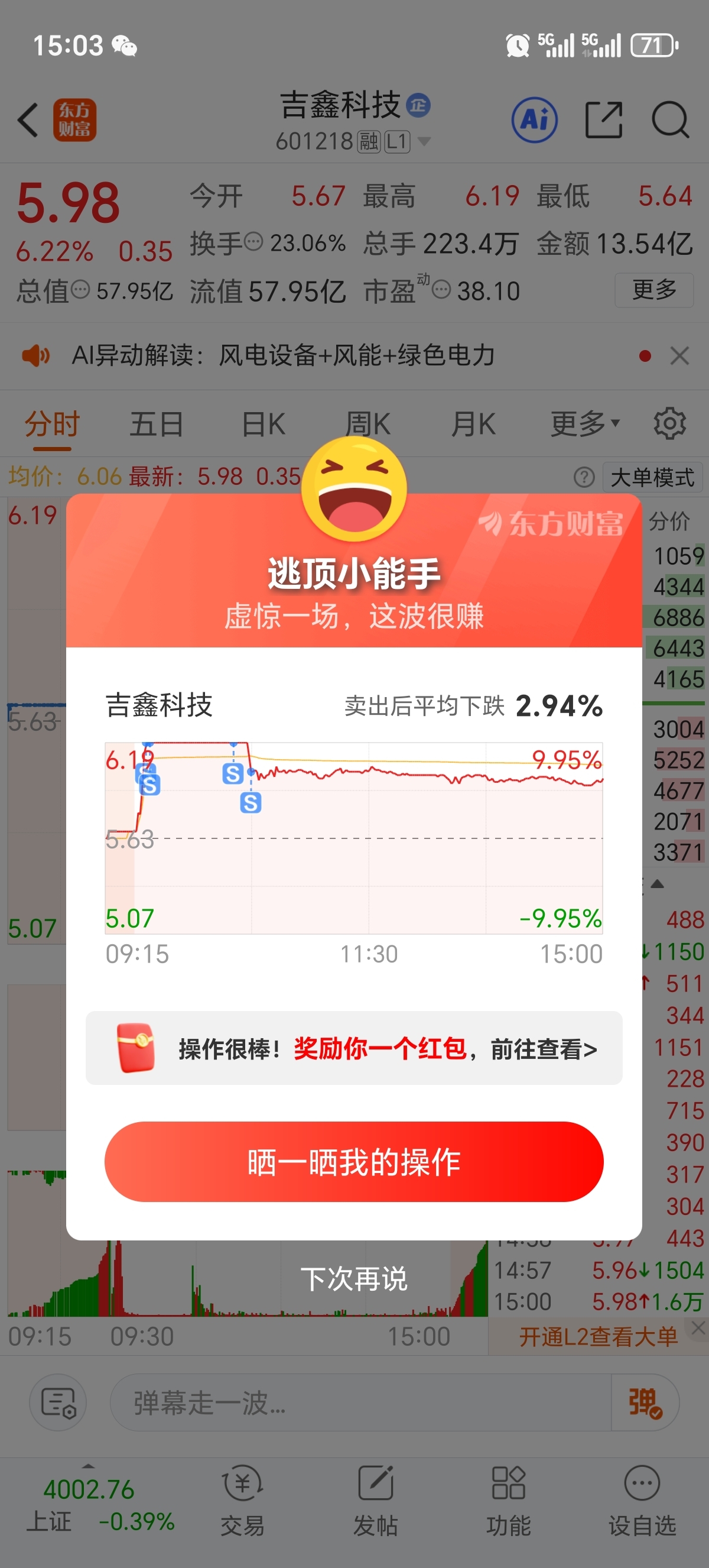 $吉鑫科技(SH601218)$ 拿了一个礼拜还好没丢人 还会再回来的