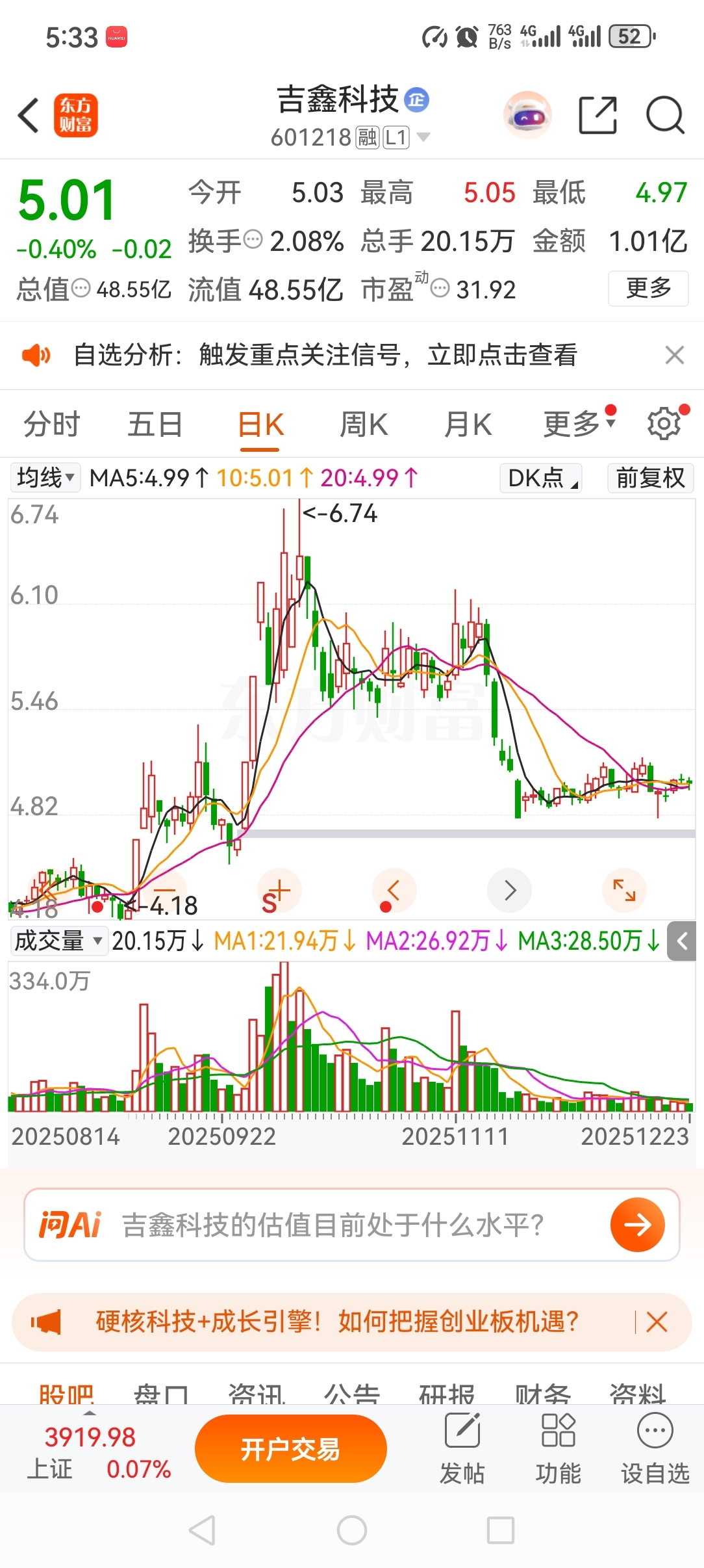 $吉鑫科技(SH601218)$ 小心点补跌,横盘必跌,看k线还没止跌