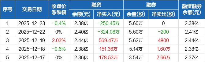 吉鑫科技:融资净偿还250.45万元,融资余额2.38亿元(12-23)