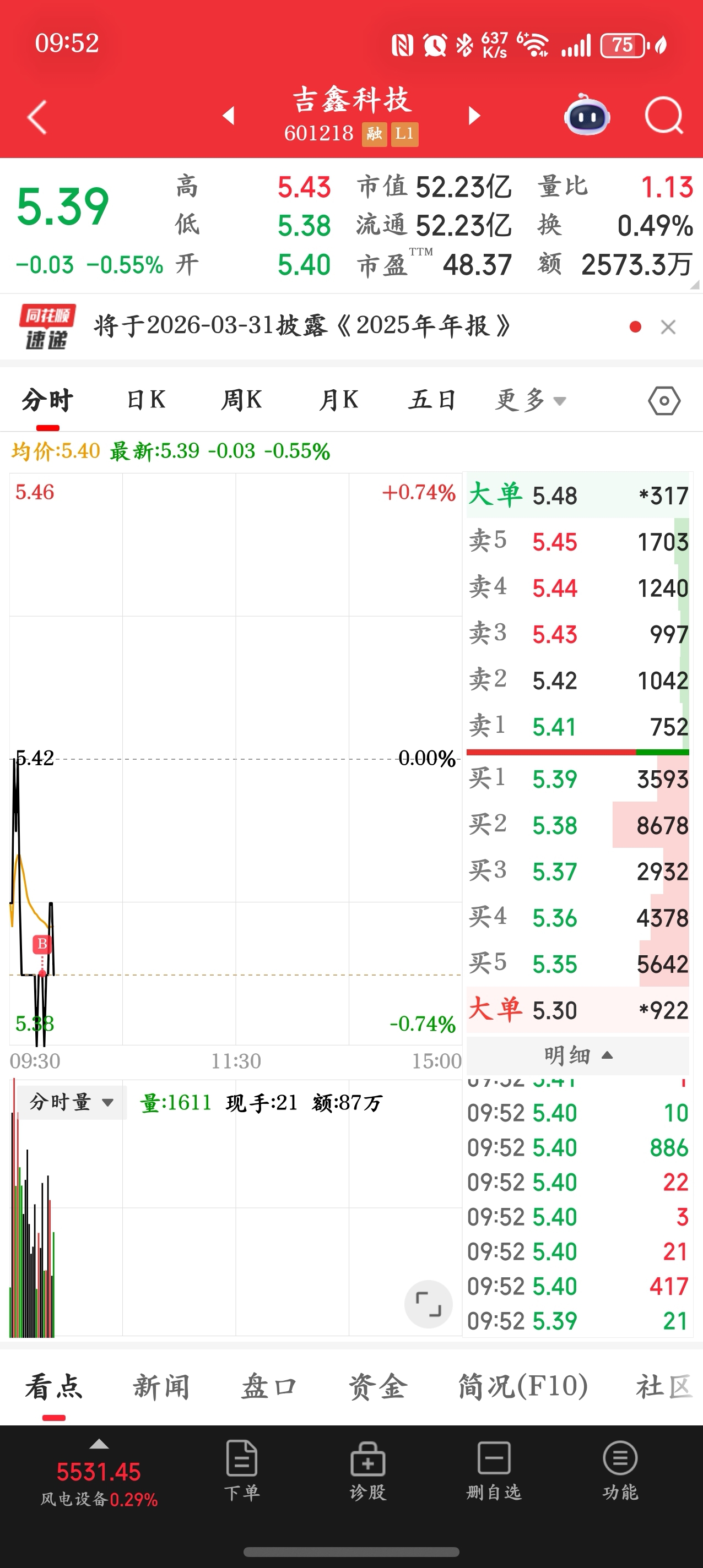 $吉鑫科技(SH601218)$ 加仓,5.39追入