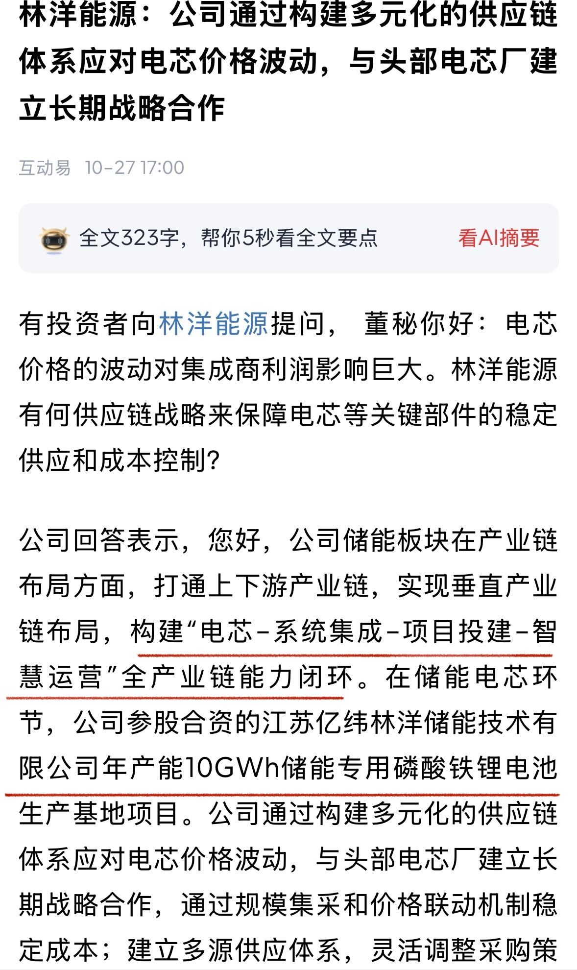 林洋能源:数据中心电网+10GWH磷酸铁锂+电芯储能生产基地;面对全球对电力需求