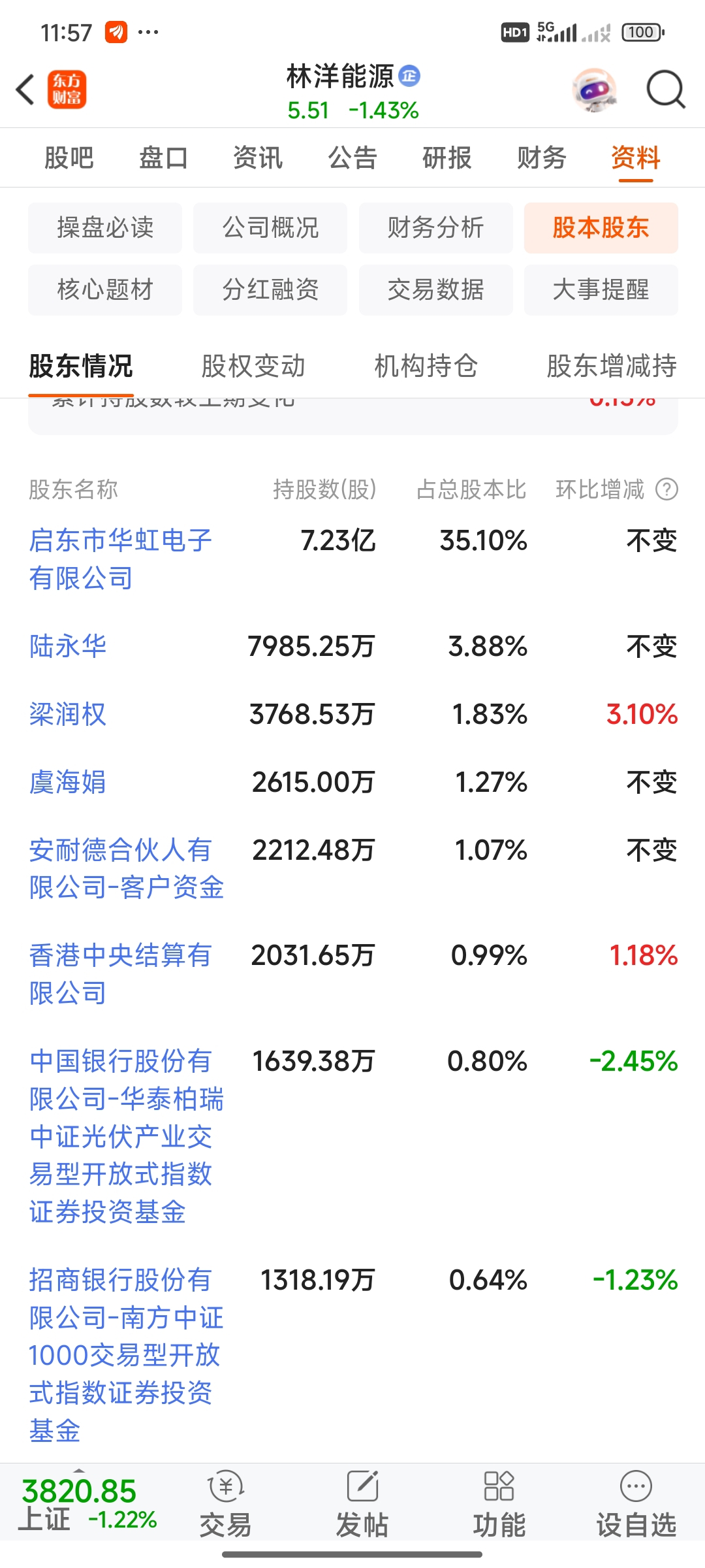 $林洋能源(SH601222)$ 国家队一点一点的往外走。一毛一毛的往下走