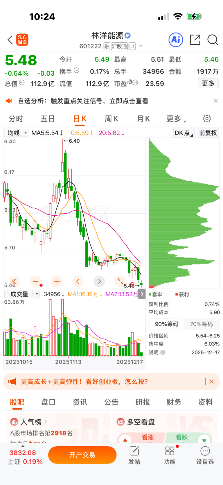 $林洋能源(SH601222)$ 垃圾杂毛股98%的投资者被套