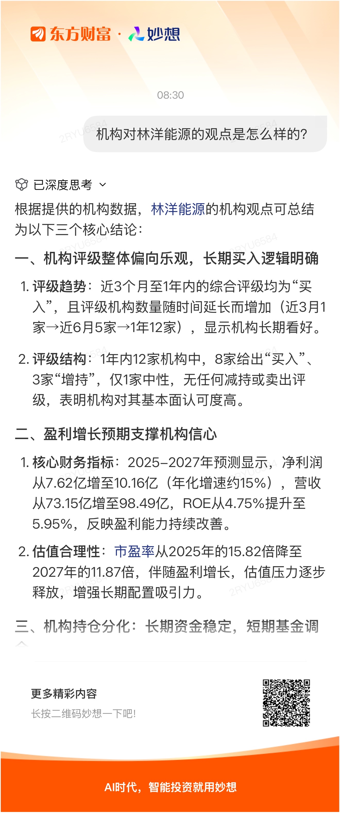 想一下:机构对林洋能源的观点是怎么样的?