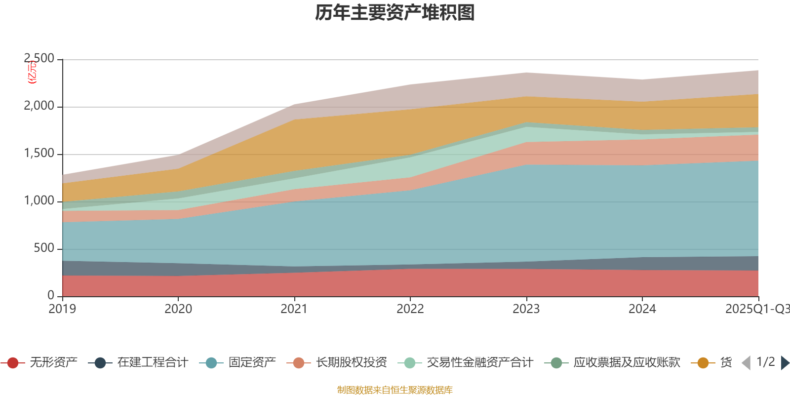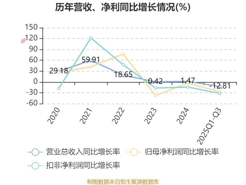 资产重大变化方面,截至2025年三季度末,公司货币资金较上年末增加18.04%,占公司总资产比重上升1.72个百分点;交易性金融资产合计较上年末减少48.39%,占公司总资产比重下降1.19个百分点;无形资产较上年末减少1.49%,占公司总资产比重下降0.67个百分点;其他非流动资产较上年末增加55.15%,占公司总资产比重上升0.67个百分点。