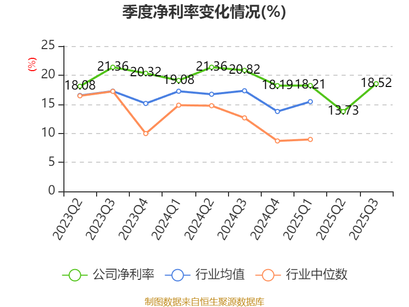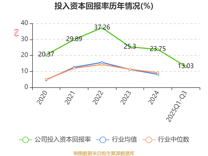 盈利能力方面, 2025年前三季度公司加权平均净资产收益率为13.74%,同比下降2.83个百分点。公司2025年前三季度投入资本回报率为13.03%,较上年同期下降4.16个百分点。