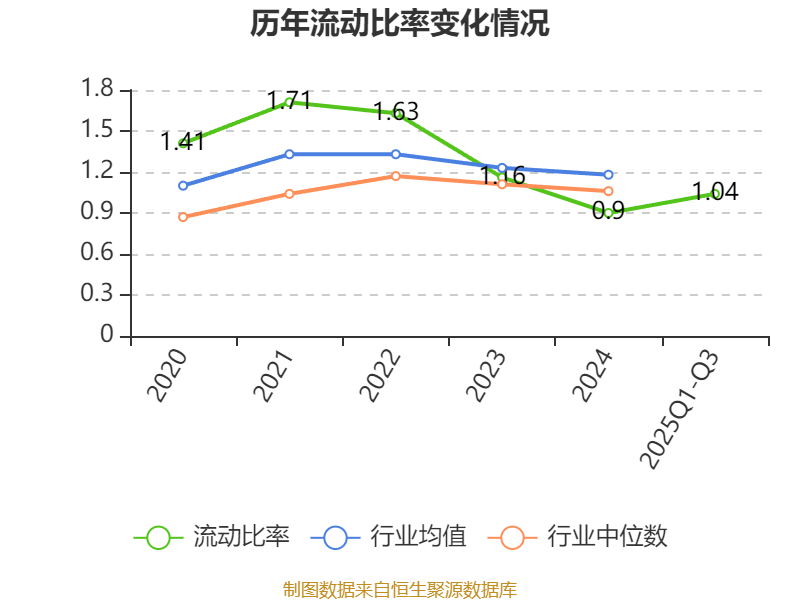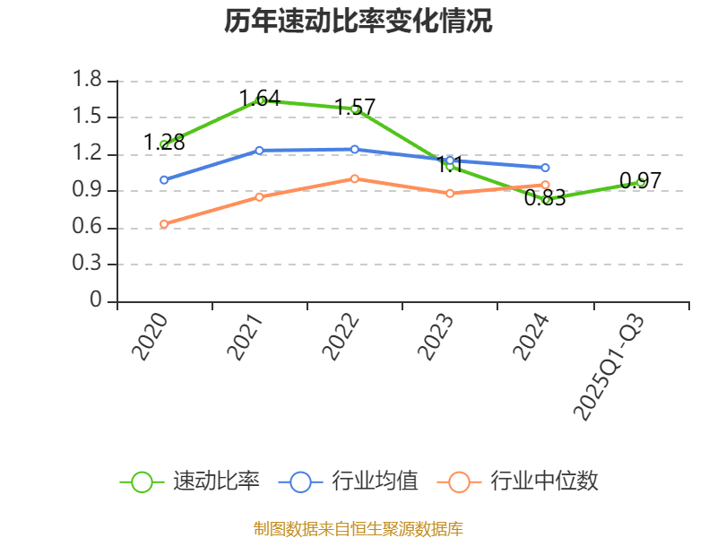 2025年前三季度,公司流动比率为1.04,速动比率为0.97。