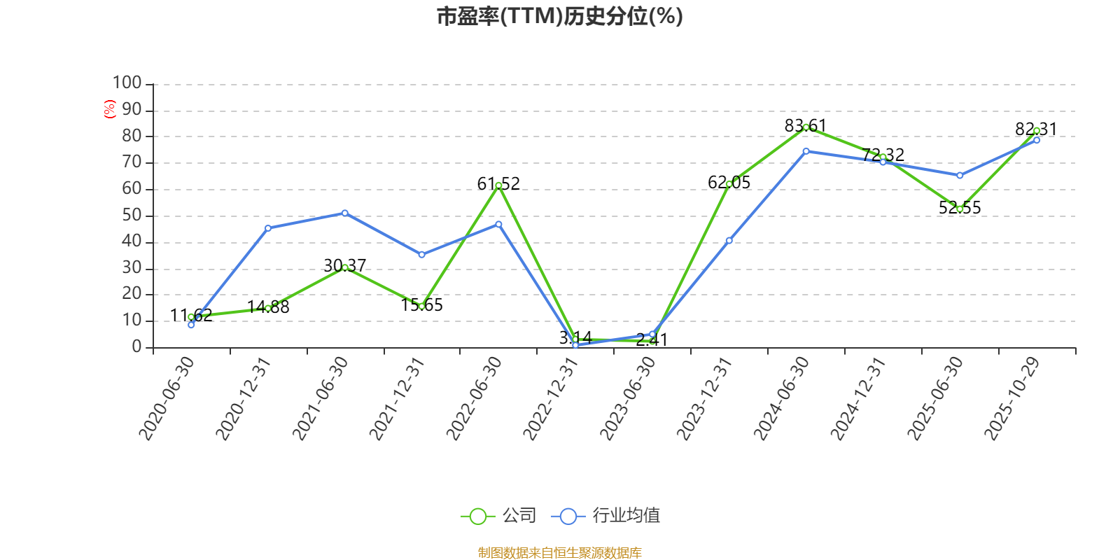 市盈率、市净率为负时,不显示当期分位数,会导致折线图中断。