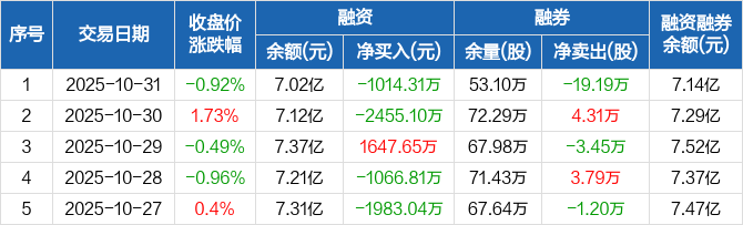 陕西煤业融资融券信息显示,2025年10月31日融资净偿还1014.31万元;融资余额7.02亿元,创近一年新低,较前一日下降1.42%。