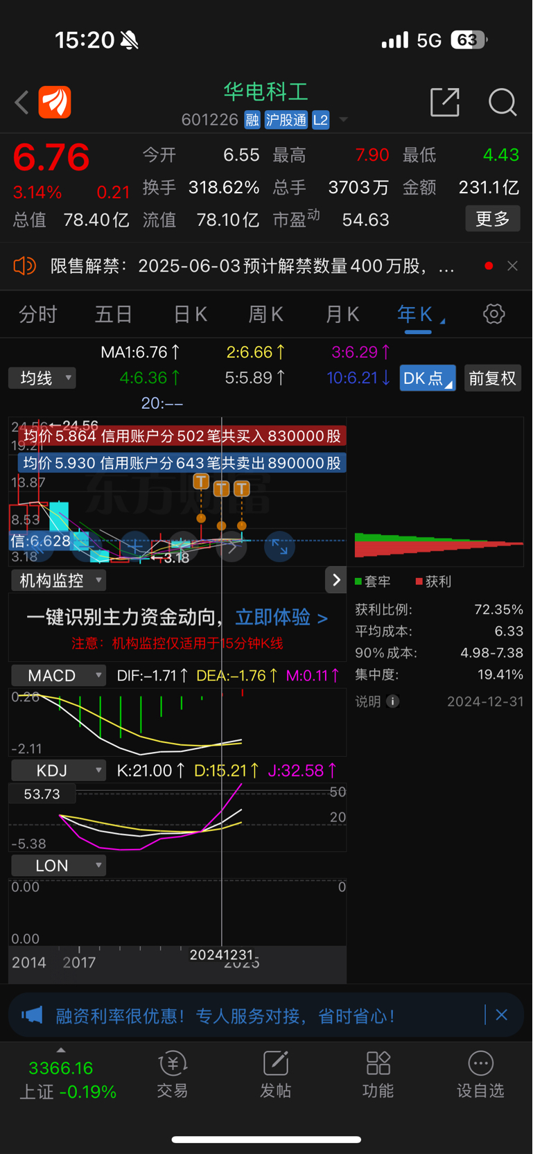 $华电科工(SH601226)$ 年k向上,必上9