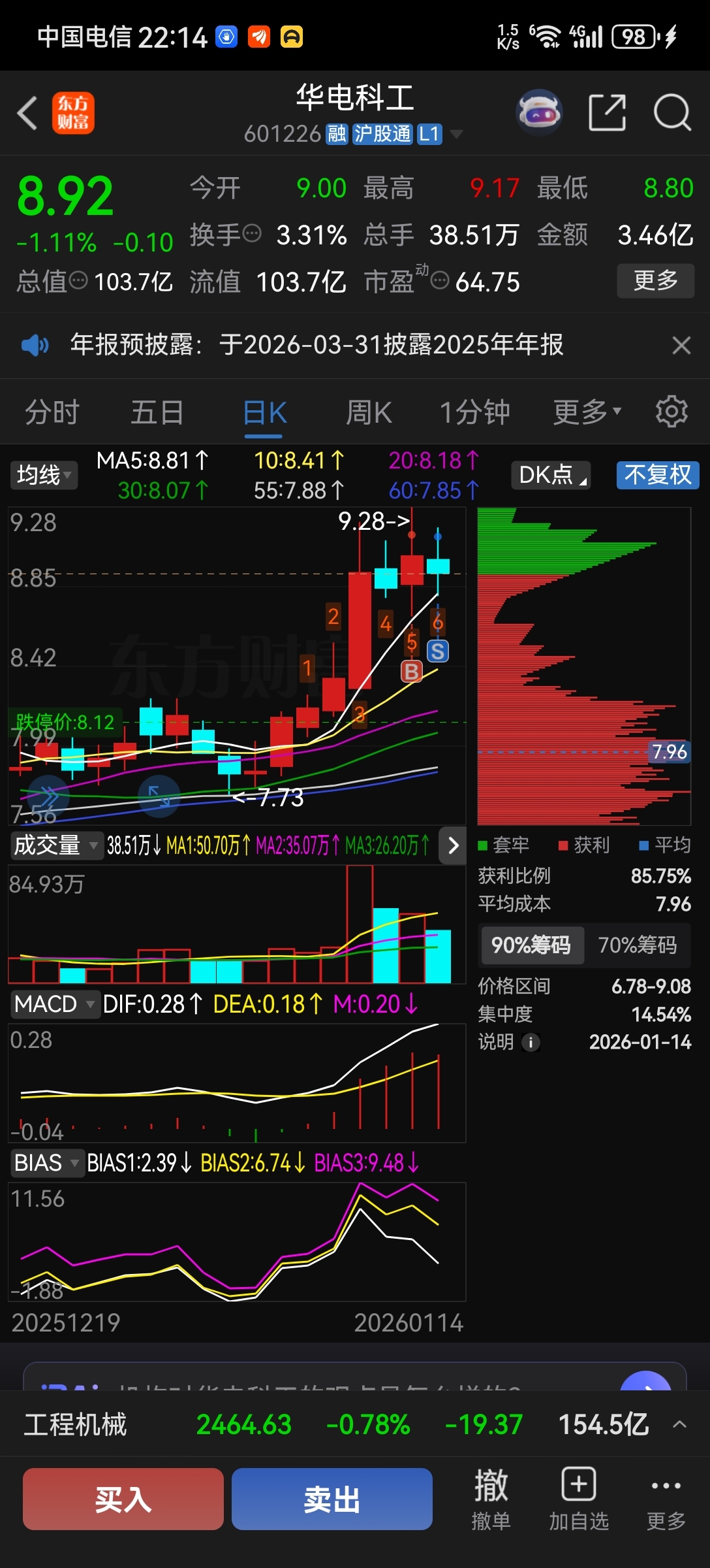 $华电科工(SH601226)$ 不让我挣钱。那就删自选