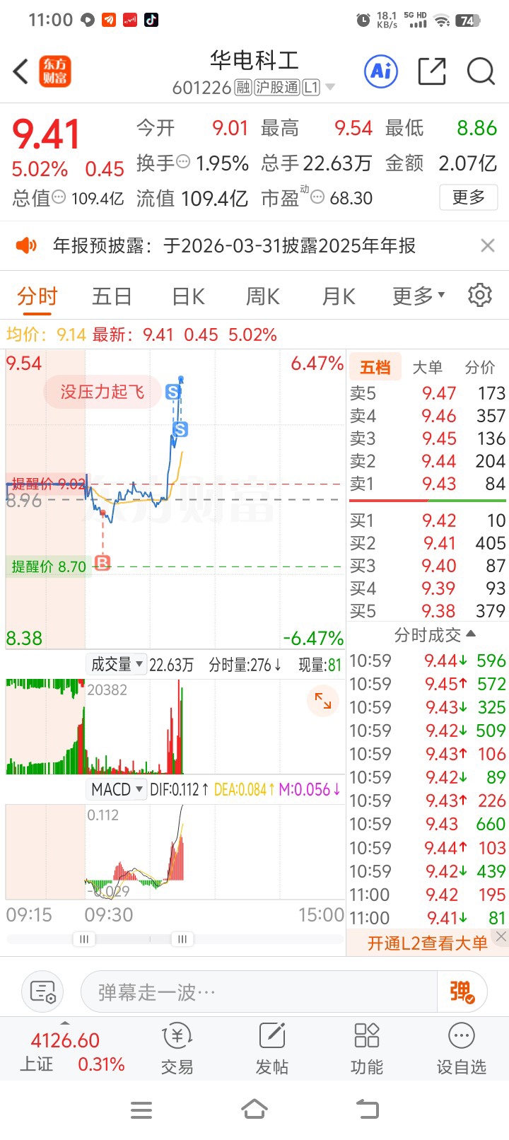 $华电科工(SH601226)$ 拉吧,今日段差先到手