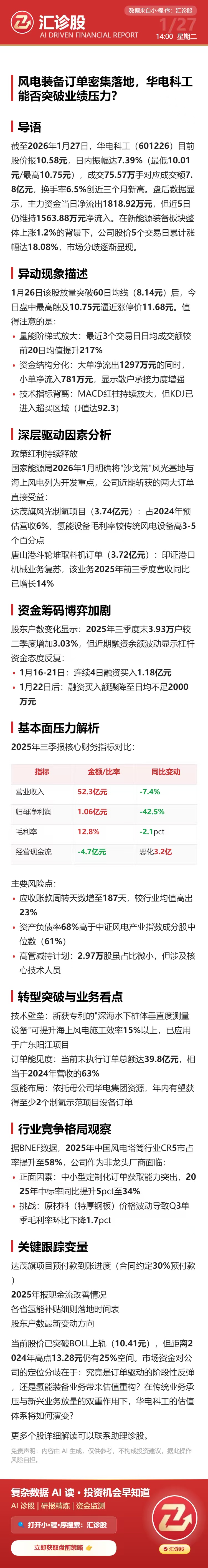 风电装备订单密集落地,华电科工能否突破业绩压力?