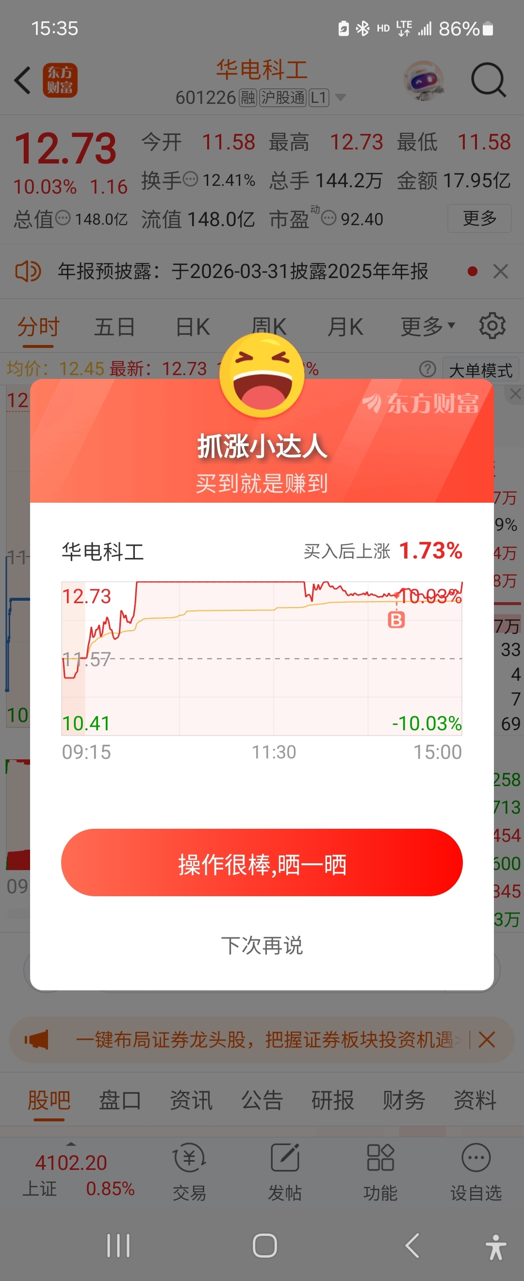 温馨提示: 1.根据《证券法》规定,禁止编造、传播虚假信息或者误导性信息,扰乱证券市场;2.用户在本社区发表的所有资料、言论等仅代表个人观点,与本网站立场无关,不对您构成任何投资建议。用户应基于自己的独立判断,自行决定证券投资并承担相应风险。《东方财富社区管理规定》