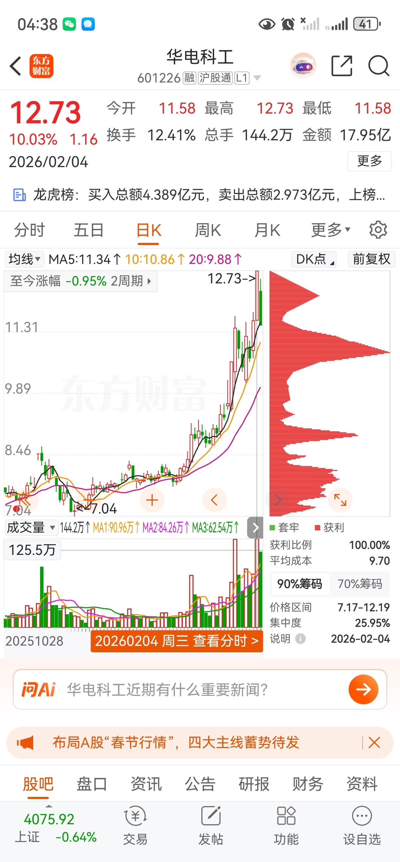 $华电科工(SH601226)$ 大家看看底部筹码纹丝未动,我昨天和今天筹码更趋于集中,明天低开4个点以内,肯定会涨,平开有可能上板,今天就是昨天的量化互杀。