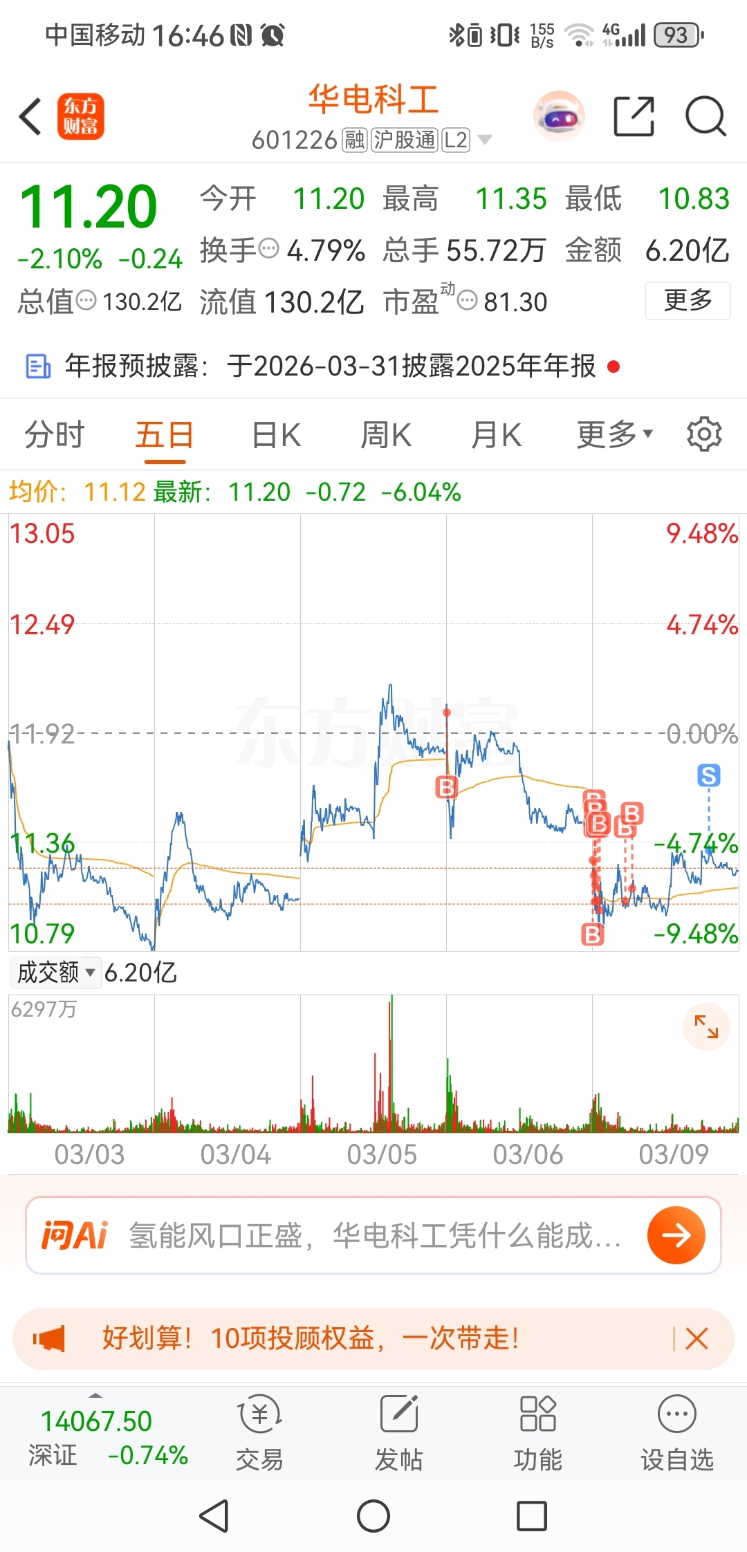 $华电科工(SH601226)$ T了一下11.21的本钱