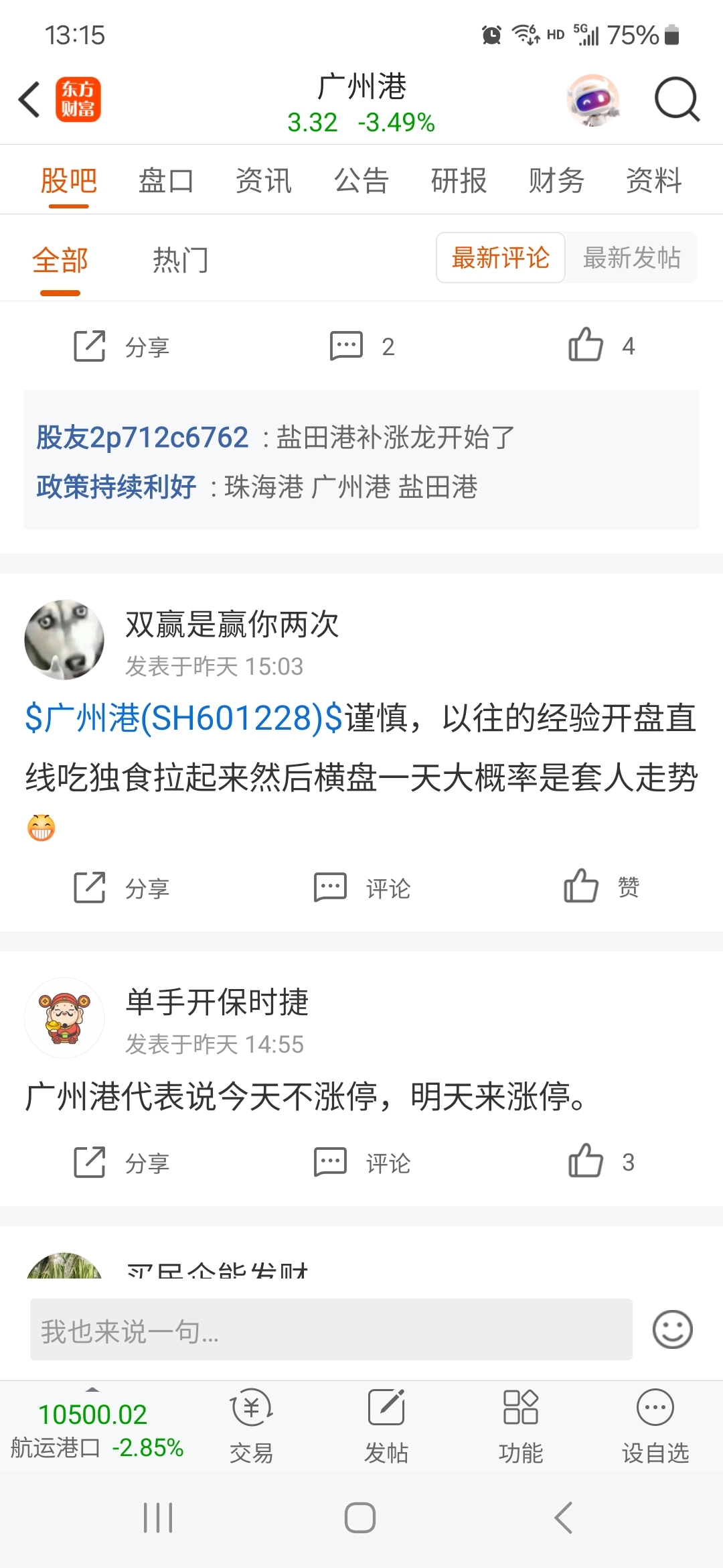 $广州港(SH601228)$ 昨天就说了,昨天那个开盘直线拉上去吃独食的走法散户开盘根本买不到,等横盘让你们买的时候就是为了套住你们