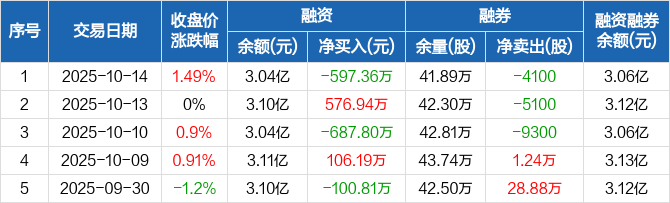 广州港:融资净偿还597.36万元,融资余额3.04亿元(10-14)