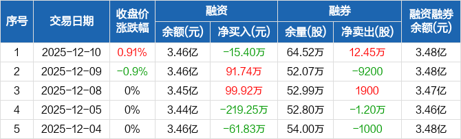 广州港:融资净偿还15.4万元,融资余额3.46亿元(12-10)