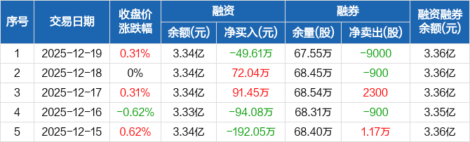 广州港:融资净偿还49.61万元,融资余额3.34亿元(12-19)