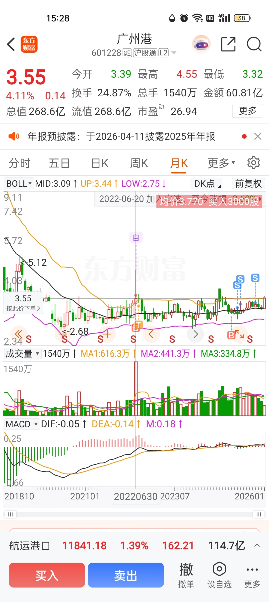 哪会冲高了一波以为要突破就追高买入了,没想到后面能跌破3块去。。。。然后拿了三年,3.4的时候就全割飞了(原本打算做差价的)