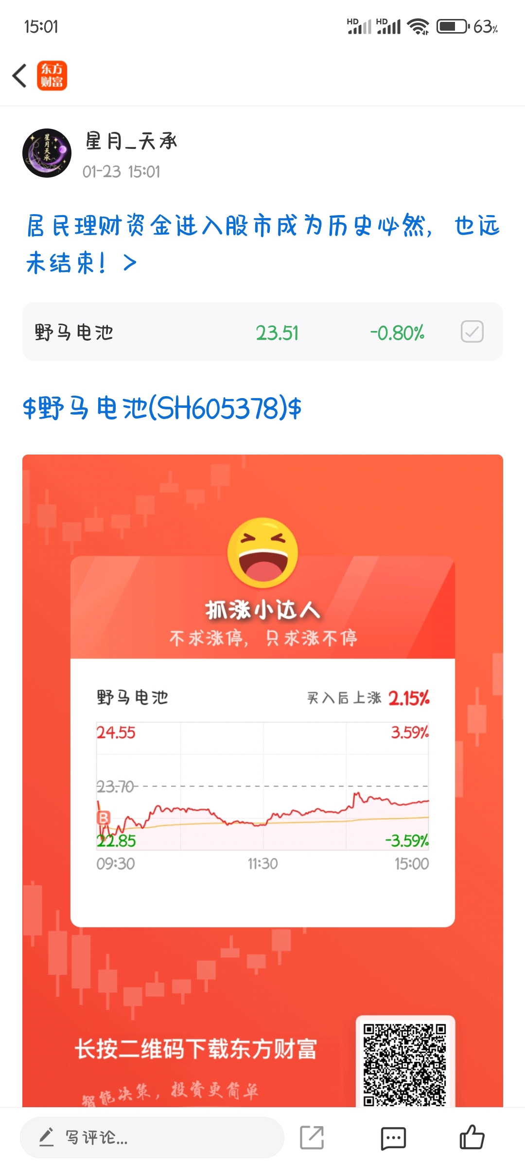 温馨提示: 1.根据《证券法》规定,禁止编造、传播虚假信息或者误导性信息,扰乱证券市场;2.用户在本社区发表的所有资料、言论等仅代表个人观点,与本网站立场无关,不对您构成任何投资建议。用户应基于自己的独立判断,自行决定证券投资并承担相应风险。《东方财富社区管理规定》