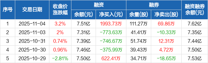 上海银行:融资净买入1993.73万元,融资余额7.51亿元(11-04)