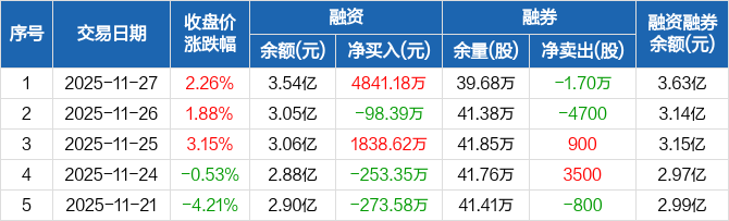 环旭电子:融资净买入4841.18万元,融资余额3.54亿元(11-27)