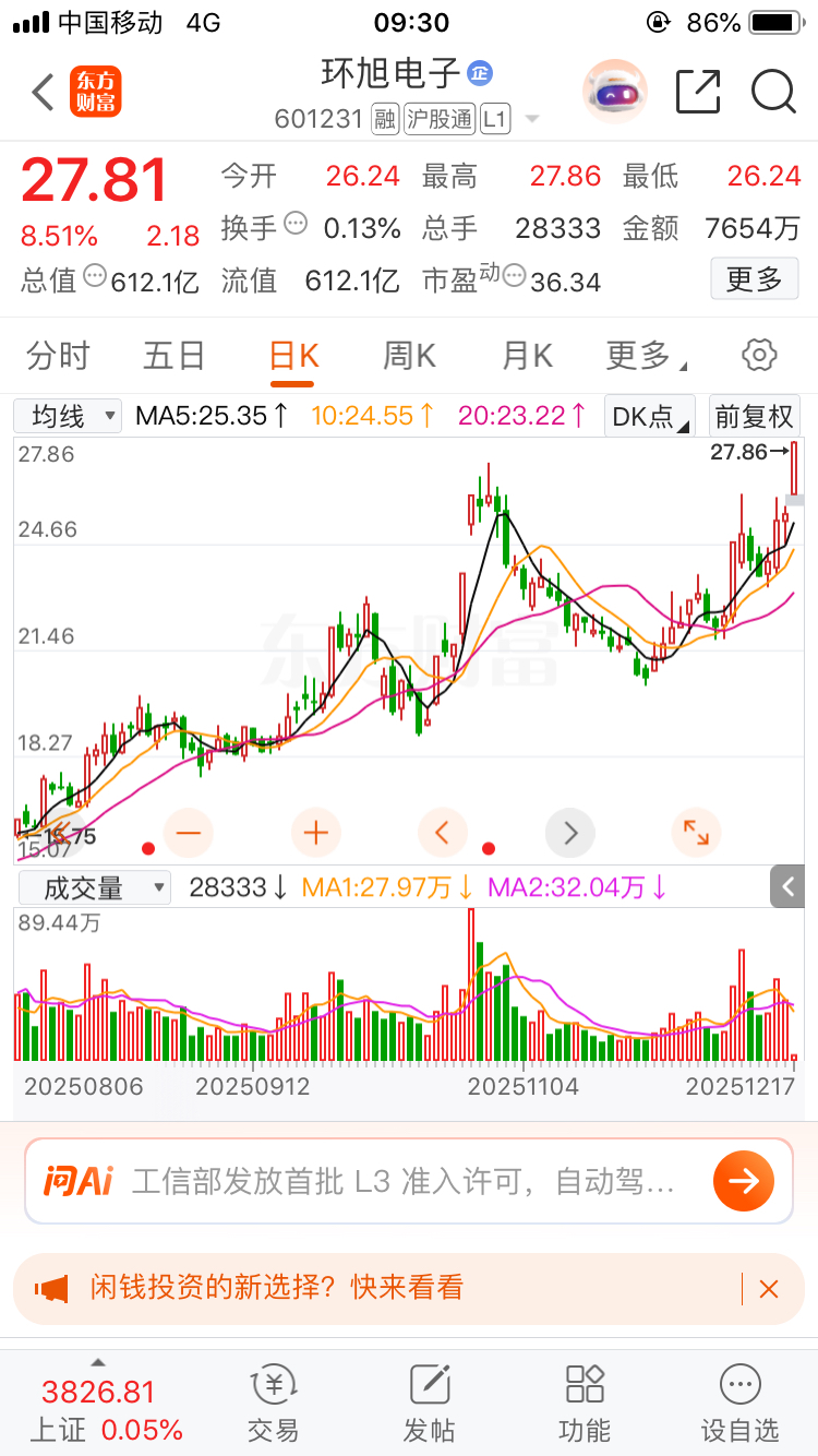 $环旭电子(SH601231)$ 哈哈,自选股前三甲,环旭电子,英雄配宝刀!加油!