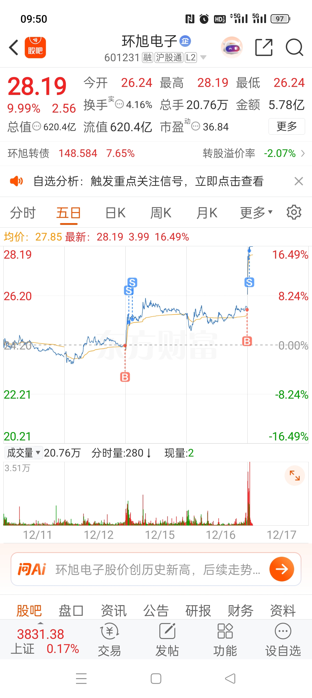 把我震出去了,不过3天在环旭全仓吃了13个点也够了,祝留下的兄弟们发财