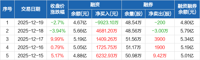 环旭电子:融资净偿还9923.1万元,融资余额4.67亿元(12-19)