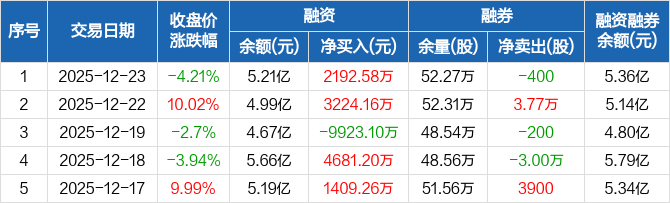 环旭电子:融资净买入2192.58万元,融资余额5.21亿元(12-23)