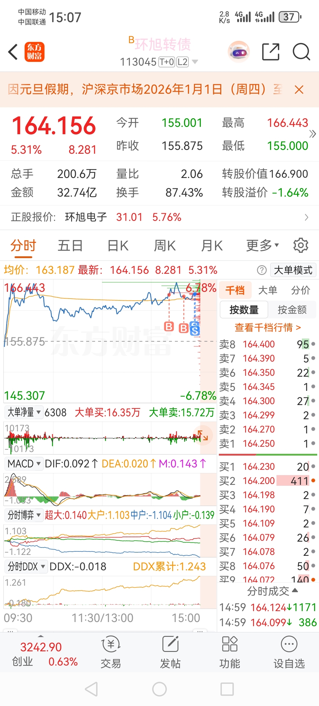 $环旭电子(SH601231)$ 没拉涨停 还是卖了 今天不转股了
