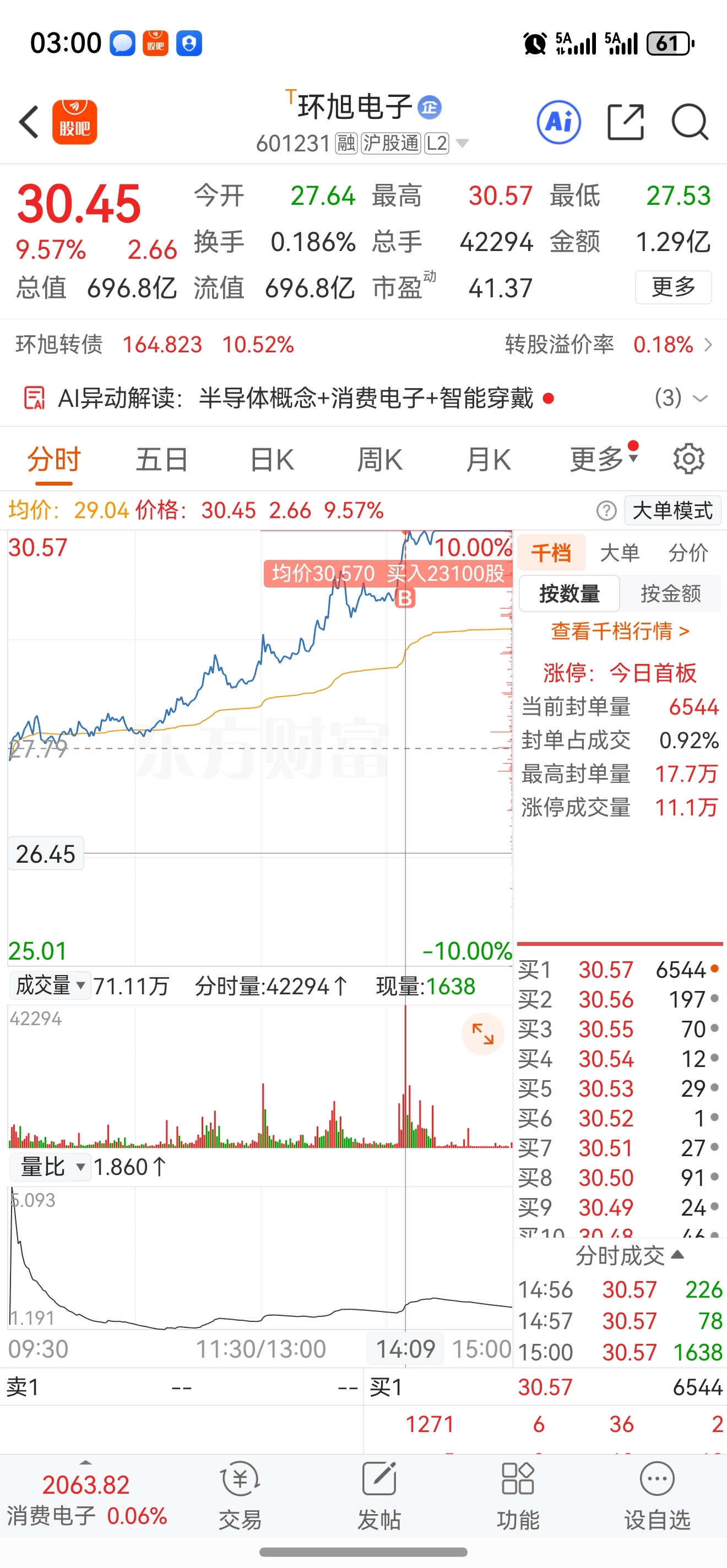 $环旭电子(SH601231)$ 上板的时候感觉换手够了,直接扫的板,后面炸了几次,还好仓位不重,不过今天能够上板还是可以期待的