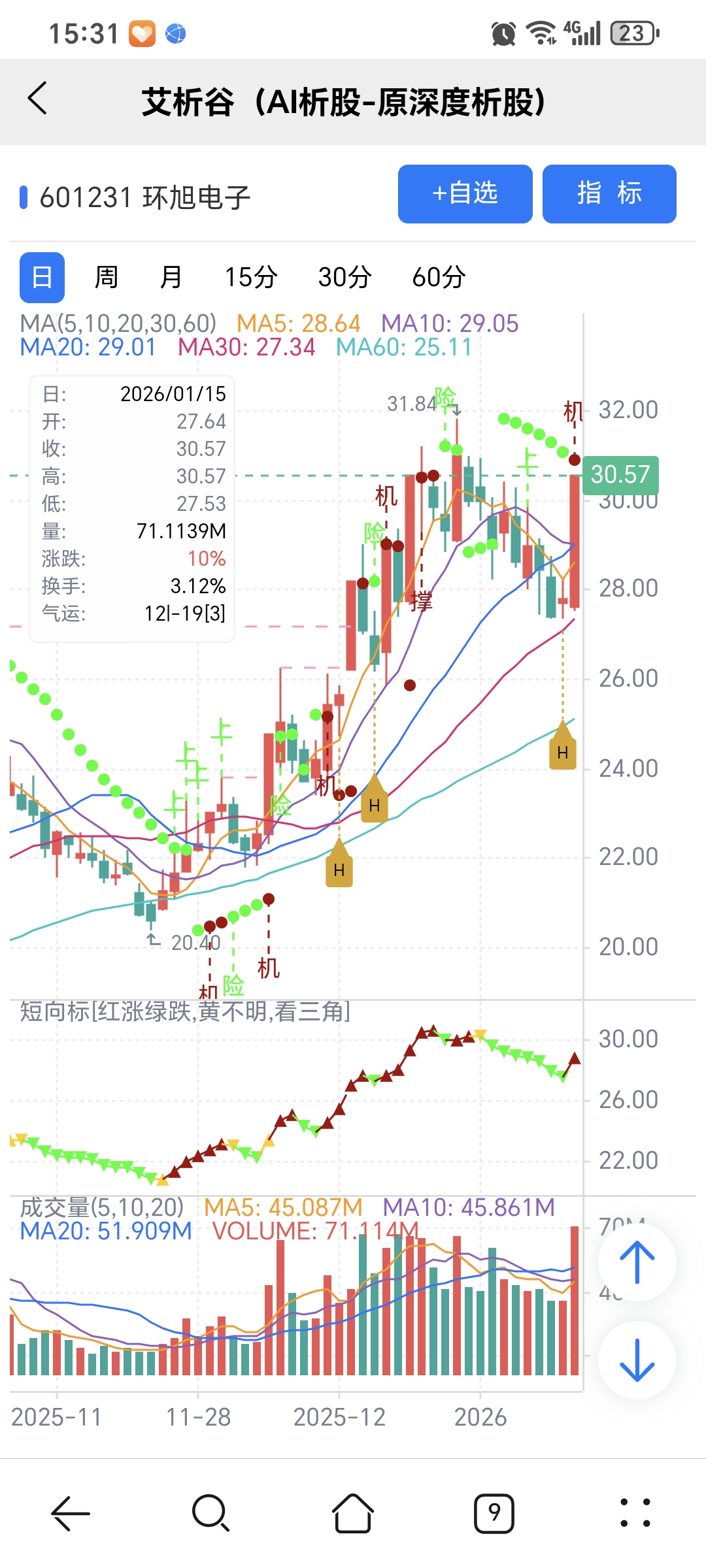 风险:股价下穿艾短波或红变绿、绿字。