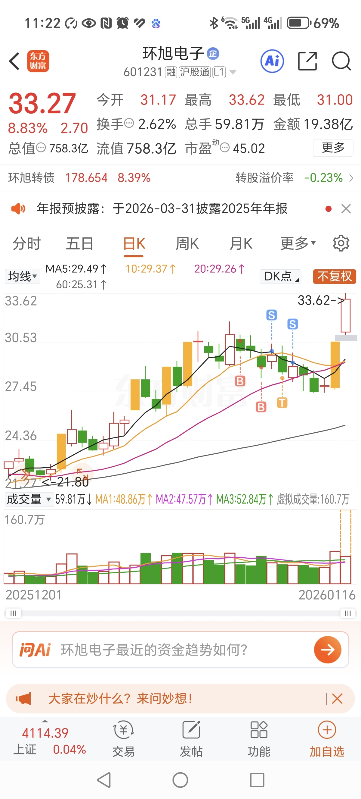 $环旭电子(SH601231)$ 刚离开几天你他吗的就起飞了,这里错过大肉,昨天去南兴股份抄底,今天跌停出不来,当初一开始买入你也是看你股性活跃,后面看你天天创新低,有两种选择,就是一路做t,一种是直接远离了,没想到又选择错误,跟当初德龙汇能一样错过二伯波大肉